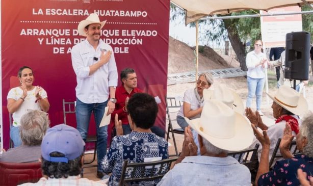 LA ESCALERA, HUATABAMPO. SONORA. MX. — El Gobierno de Sonora, a través de la Secretaría de Bienestar, dio inicio a la construcción de una línea de conducción y un tanque elevado de agua potable en la comunidad de La Escalera, municipio de Huatabampo, con una inversión superior a 15 millones de pesos, provenientes del Fondo de Infraestructura Social para las Entidades (FISE).