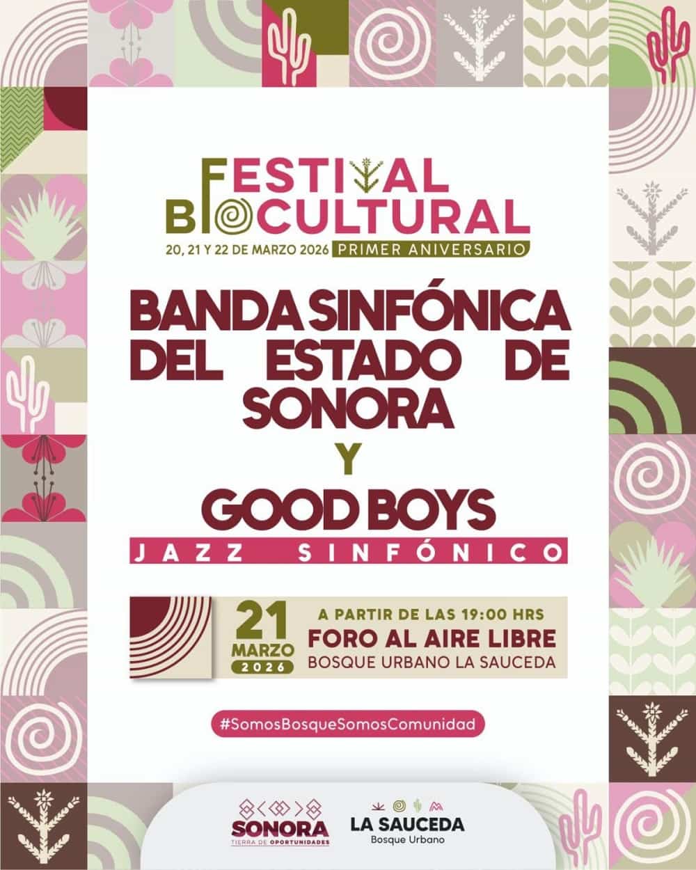 HERMOSILLO, SONORA. MX. — El Gobierno de Sonora invita a la ciudadanía a celebrar el primer aniversario del Bosque Urbano La Sauceda con el Festival Biocultural, que se llevará a cabo los días 20, 21 y 22 de marzo de 2026, como una gran celebración comunitaria que integra arte, naturaleza, deporte y participación ciudadana.